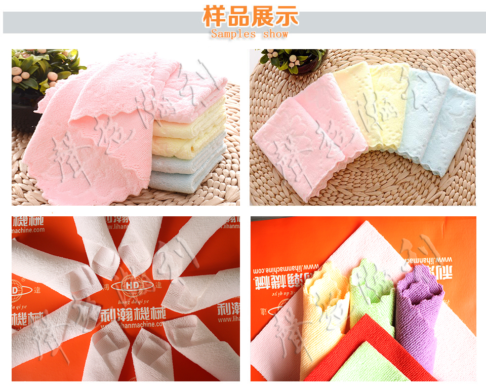 全自動毛巾分條橫切機采用超聲波系統,對整卷布料進行分條的同時,并根據布料所需要的長度進行超聲波橫切,可按分切尺寸的寬窄長短隨意調節刀具,只要簡單替換不同切口的刀具便可分切出直刀切口或帶花紋切口產品,本機具備分切后切后布料自動封邊、不散邊、不發焦、不發黃、不發硬等優點。克服了激光切割機、熱刀分條等設備無法克服的缺點。