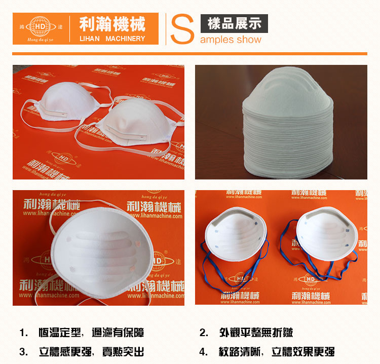 3.結構合理,標準可調,口罩外形漂亮,切邊均勻,焊帶結實。