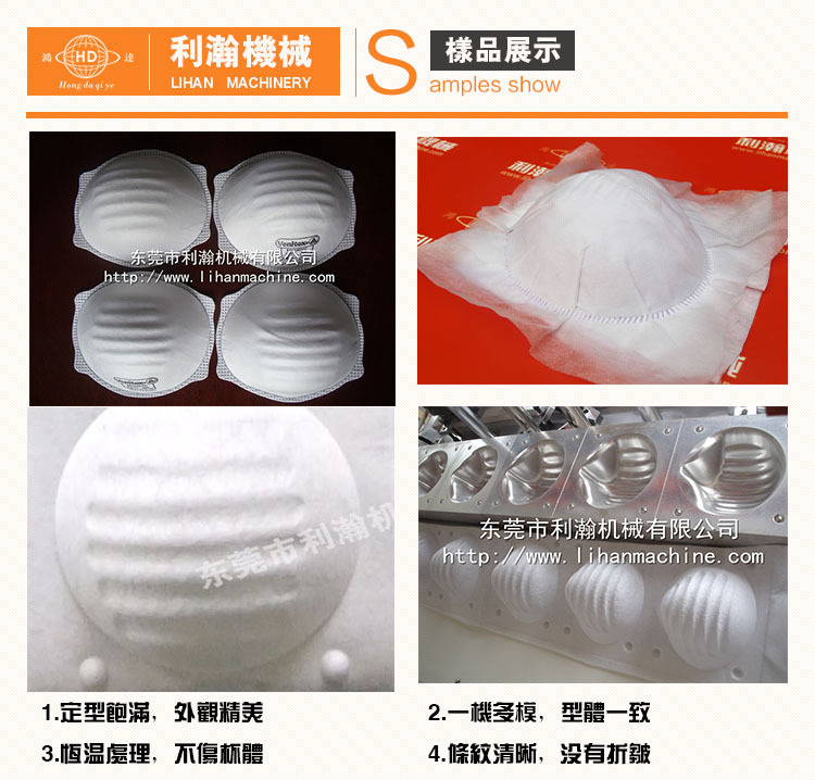 鴻達(dá)牌“全主動杯型口罩成型機”,是利瀚公司精研的杯型口罩定型的設(shè)備,合適客戶出產(chǎn)各款型的杯型口罩而選用的主動化設(shè)備。 該機具有主動送料、主動拉料、主動剪切等功能;本機是使用恒溫?zé)釅憾ㄐ驮恚溆眠M口模具,成型后口罩定型豐滿,外形漂亮, 壓紋明晰;選用PLC程序控制,整機主動化作業(yè),是出產(chǎn)廠家首選的定型換代設(shè)備。