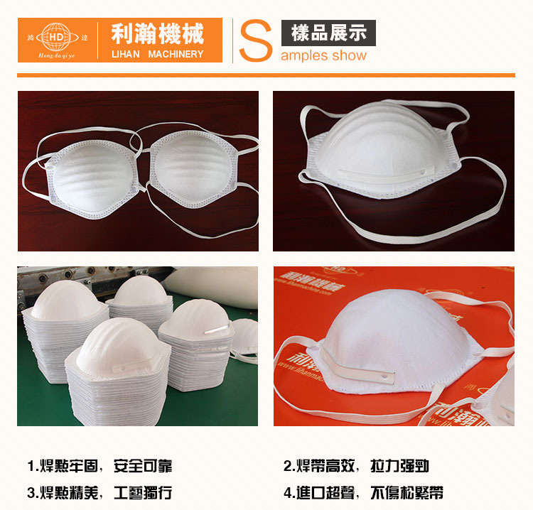 4.結構合理,模具可調,膠條焊接漂亮,耳帶焊接結實,焊點均勻。