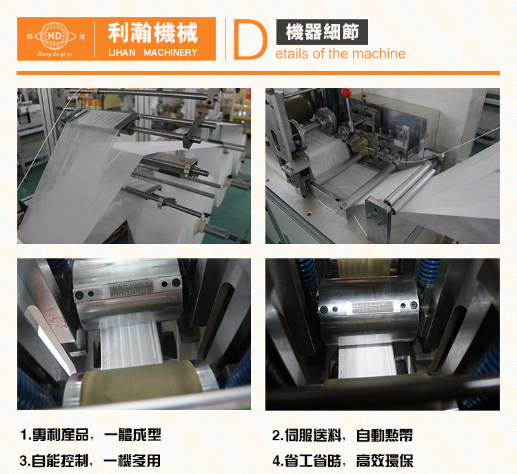 “鴻達(dá)牌”一拖二平面口罩外耳連線機(jī),是為出產(chǎn)高端口罩的抱負(fù)設(shè)備,設(shè)備從質(zhì)料進(jìn)入到制品輸出,全程主動(dòng)作業(yè),削減口罩在出產(chǎn)過程人體的觸摸,然后輕松到達(dá)職業(yè)檢測(cè)規(guī)范,在產(chǎn)能方面到達(dá)較高的出產(chǎn)量;該機(jī)是三臺(tái)設(shè)備組成,即平面口罩本體機(jī)一臺(tái),外耳帶設(shè)備兩臺(tái),經(jīng)過程序控制,將口罩本體主動(dòng)傳送到耳帶焊接設(shè)備上, 然后到達(dá)全主動(dòng)化作業(yè),很大程度的降底了人工成本。