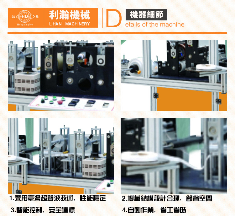 “鴻達牌”全主動碗型口罩機,是利瀚企業精心研制出的全主動化碗型口罩機,也是現在先進的碗型口罩機,該設備是技能團師研制出新程式規劃,促進全主動智能設備完結幾個工序有:主動鼻梁條粘合、耳帶焊接、口罩印刷和呼吸閥打孔, 后輸出制品。該設備智能一線完結的規劃結構,是利瀚公司總工程師輔導研制。運用1~6層口罩過濾資料輸入,只需一個操作人員將碗型口罩本體放入主機特定方位,然后設備會主動完結每個工序,是一款節約人工幾倍的設備。