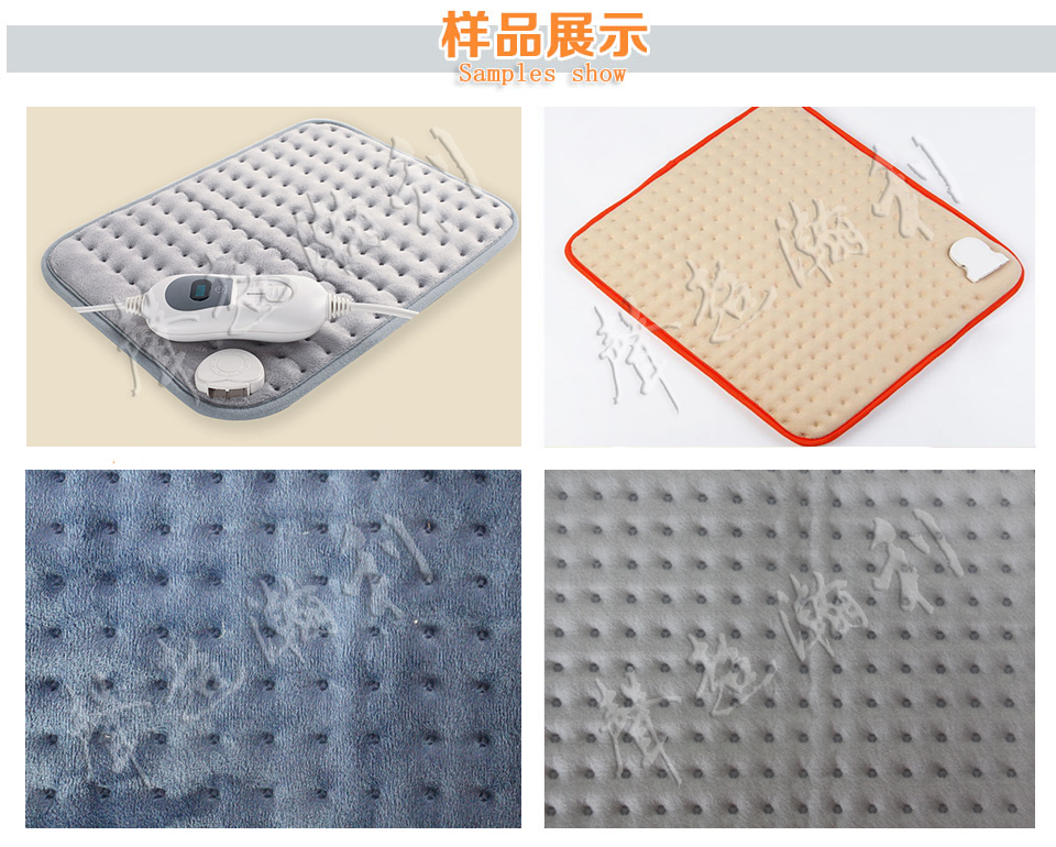 4、采用超聲波系統(tǒng)與自動(dòng)化工藝相結(jié)合,可依據(jù)用戶需求,生產(chǎn)不同花型的電熱毯成品;