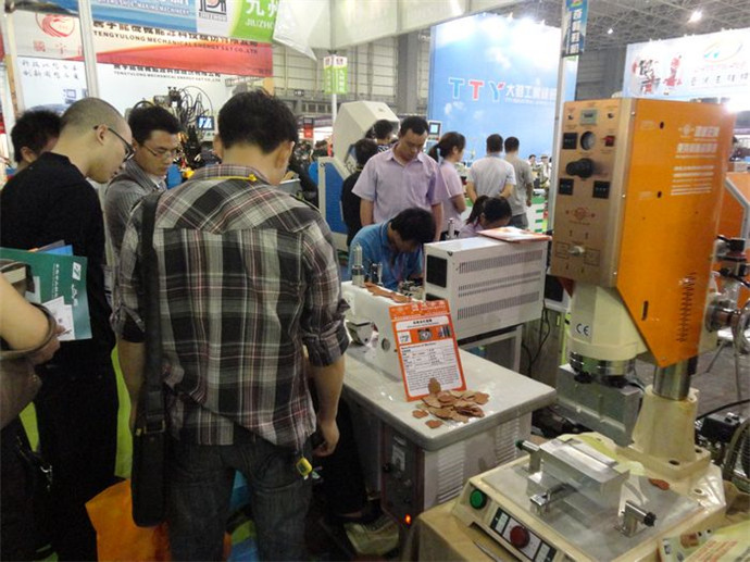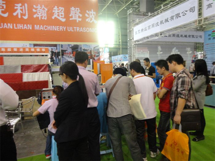 此次參展的產品有超聲波沖花機、超聲波燙鉆機、超聲波沖孔機以及超聲波壓花機等等。在參展期間,利瀚機械所出產的超聲波機械吸引了大量前來觀展的海內外友人的眼球,對我廠生產的超聲波機械產生了濃厚的興趣,參展的工作的工作人員,邊操作邊為來賓講解機器的工作原理,與成品的效果。最后利瀚超聲波滿載而歸,為利瀚超聲波設備走出國門,面向世界邁出了堅實的一步。