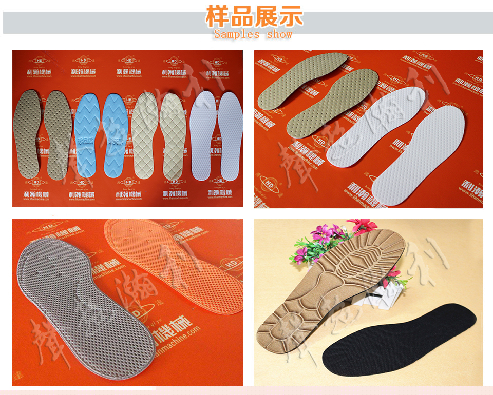5.替換磨具就可以制作不同碼數與花型,可制作材料包括皮革,網布,化纖布,無紡布,羊羔絨等.
